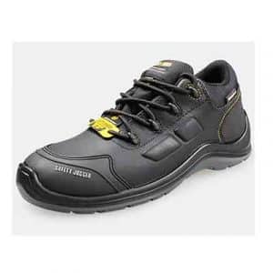 Giày Bảo Hộ Safety Jogger Lava S3 – Đen có thiết kế dáng cổ điển, lịch lãm, cứng cáp, những đường chỉ viền màu vàng nổi bật và tinh tế.
